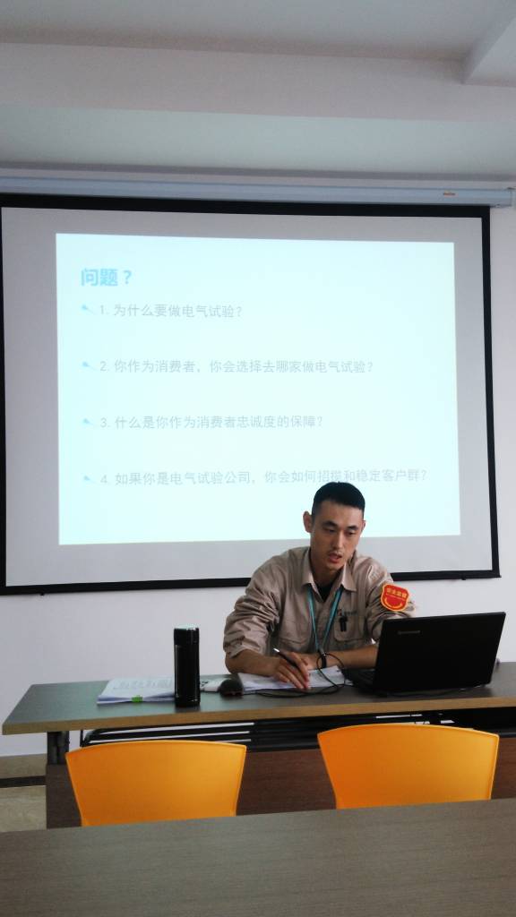 電試班組是公司重要的組成部門,是鑒定安裝工程安全性和正確性的最后把關(guān)部門,培訓過程中分析了電氣試驗的重要性,就安全生產(chǎn)聯(lián)系客戶市場提出了系列發(fā)人深思的現(xiàn)實性問題,灌輸全體電試班組工作人員思想上重視安全、工作中遵規(guī)守紀、實操時循序漸進、強化自身安全責任感的重要理念,培訓中由電試班組領(lǐng)導程英就近期工作開展情況和電試業(yè)務的操作規(guī)范要求作了報告。
